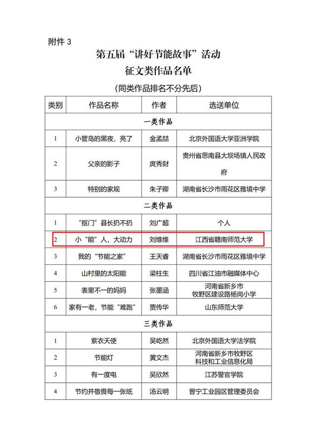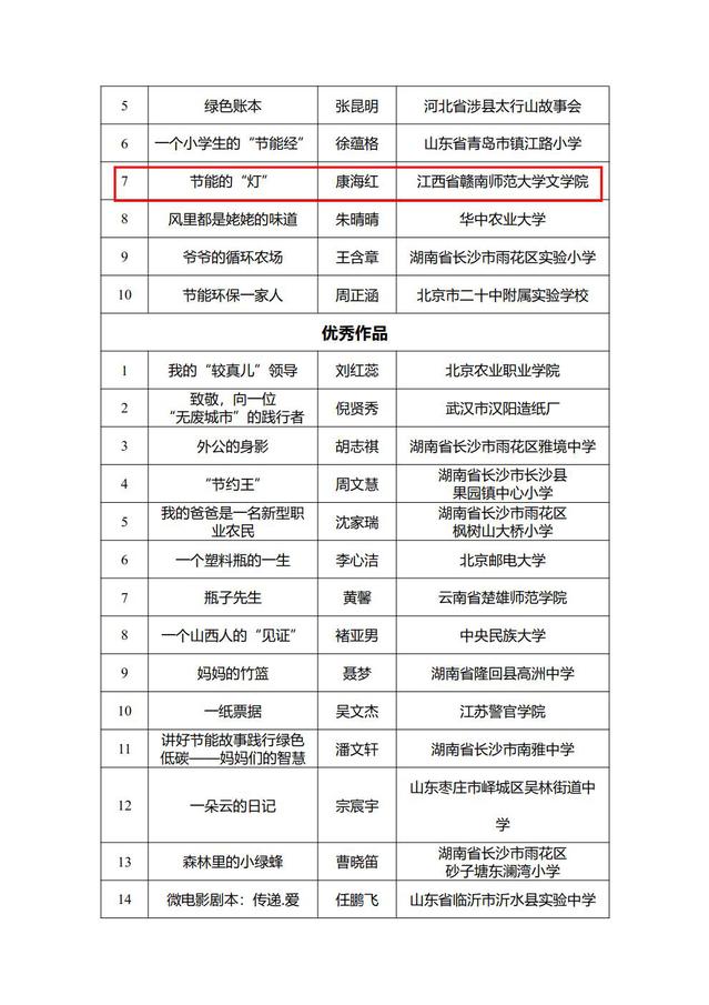 近日,全国第五届“讲好节能故事”微视频、摄影及征文征集活动获奖名单公布,我校获“优秀组织单位”荣誉称号,文学院学生刘维维《小“能”人,大动力》获评二类作品,文学院学生康海红《节能的“灯”》获评三类作品。