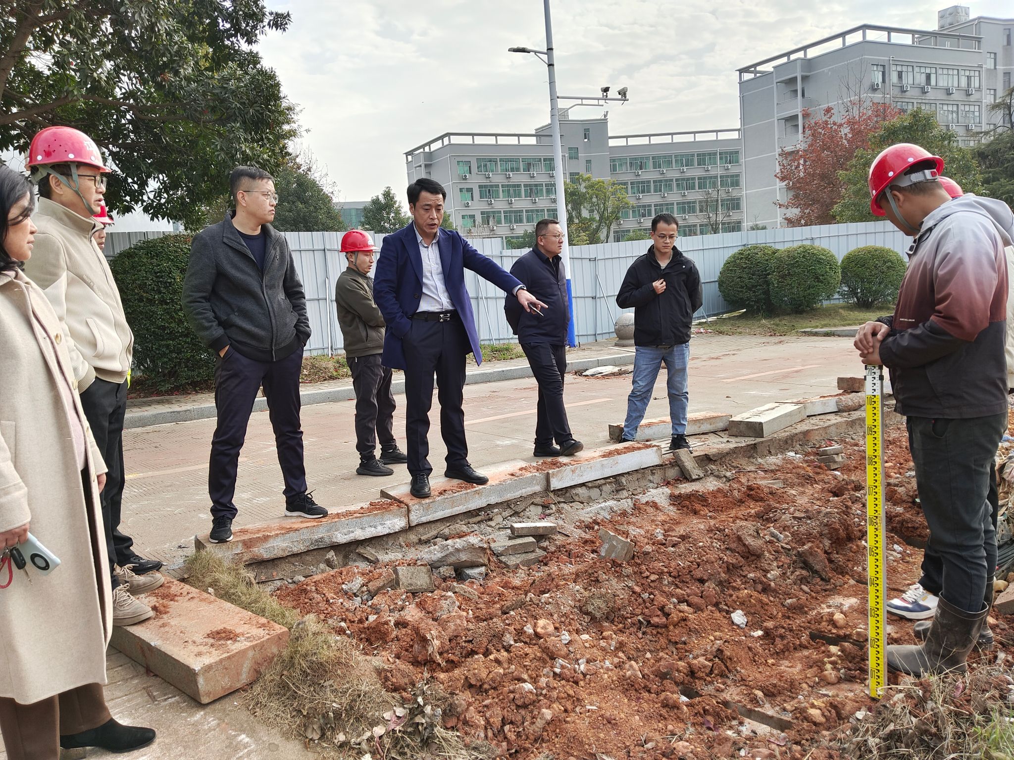 12月9日,后勤管理处负责同志以及相关工作人员对黄金校区人才周转房一期工程进行现场调度。